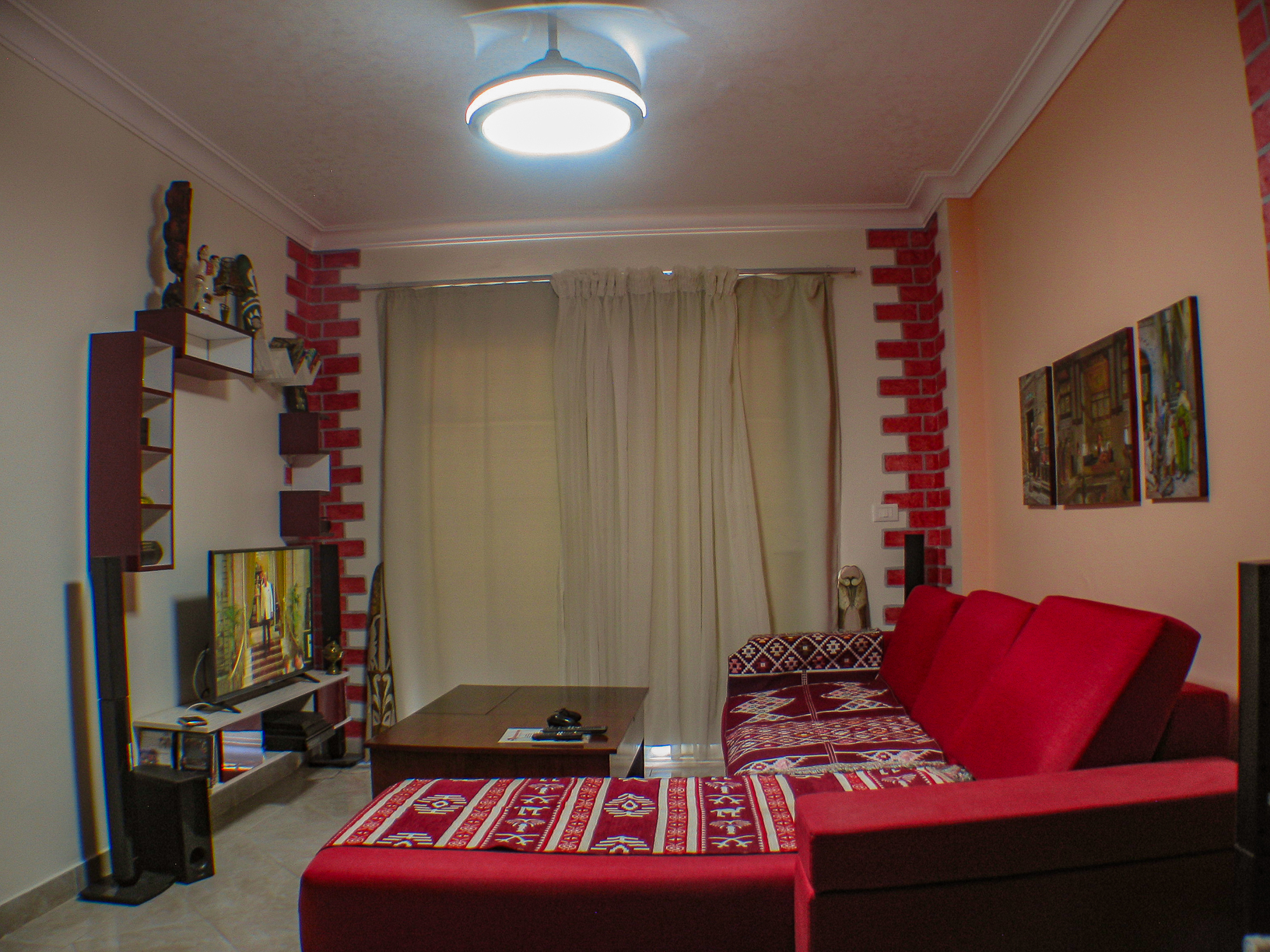 كما نوفر جهاز لعرض أسطوانات دي في دي مع اختيارنا من بعض الأفلام للمشاهدة, و لزياده المتعة وفرنا جهاز هوم سينما بصوت ثلاثي الابعاد