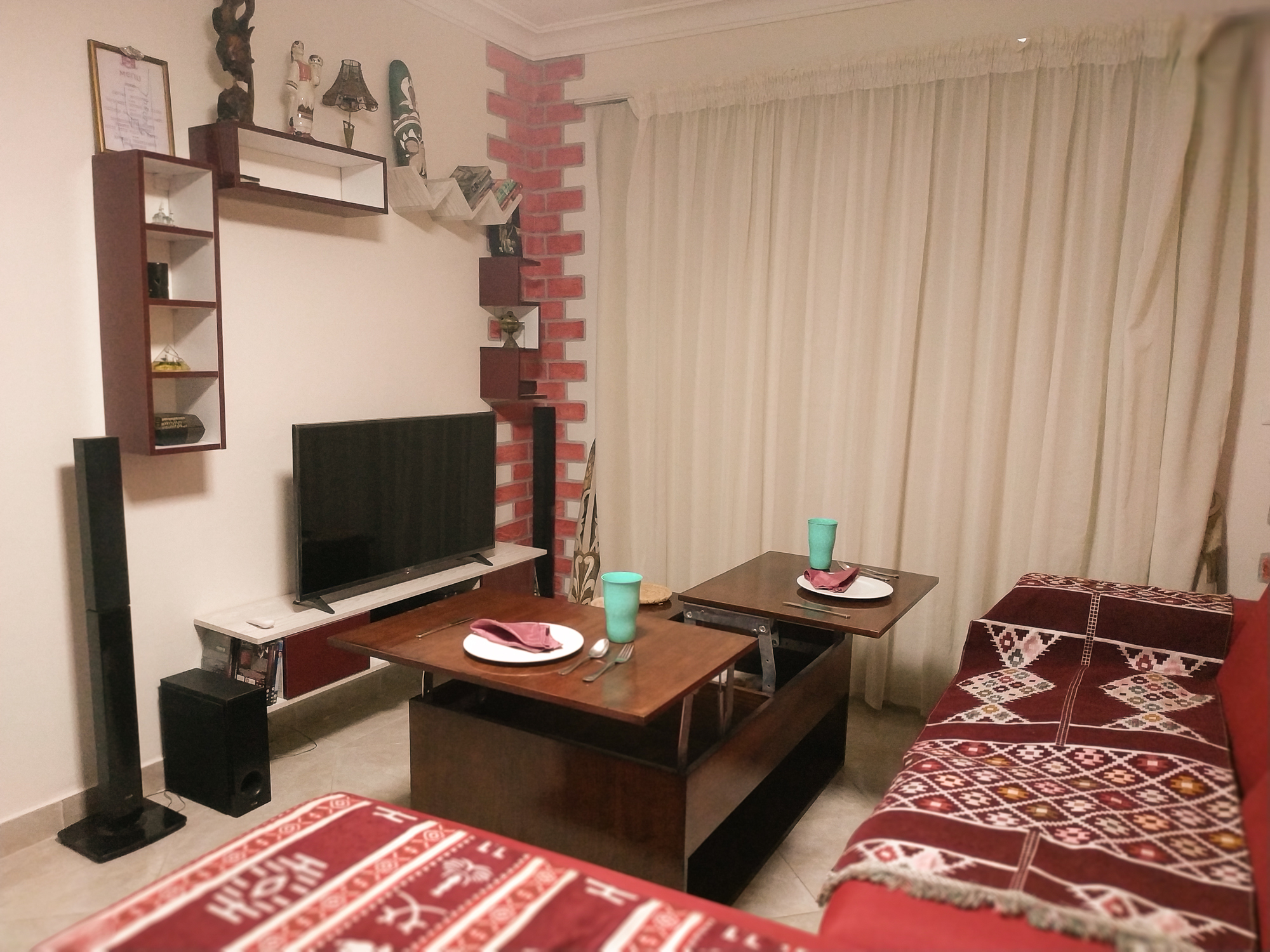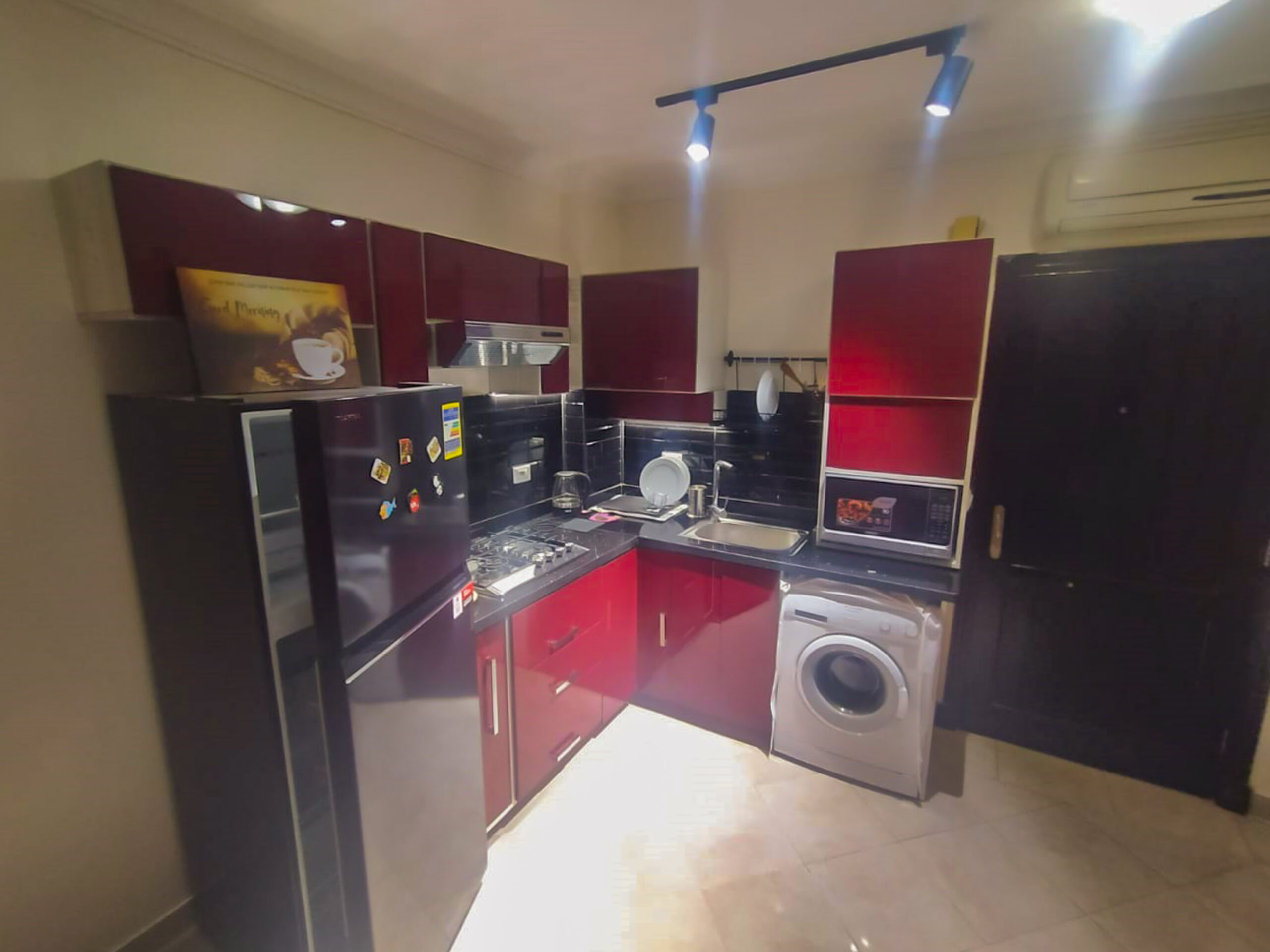 الشقة نفسها مفروشة بالكامل ومجهزة بجميع الأجهزة والمرافق اللازمة. سيكون لديك الوصول إلى مطبخ مجهز بالكامل وأسرّة مريحة وتكييف وشرفة مع إطلالات خلابة