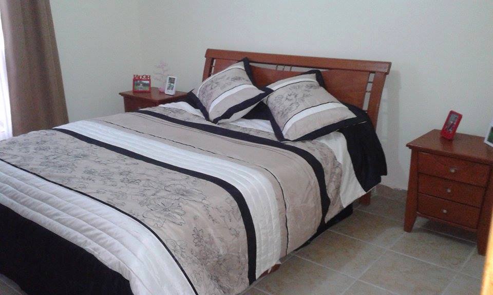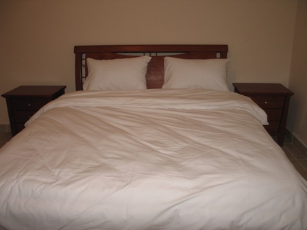 Bedrooms with a large bed, wardrobe, 2 bed side cabin and all soft bedding.