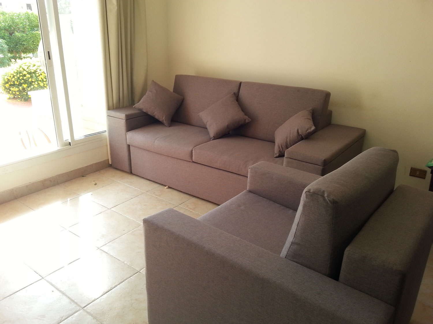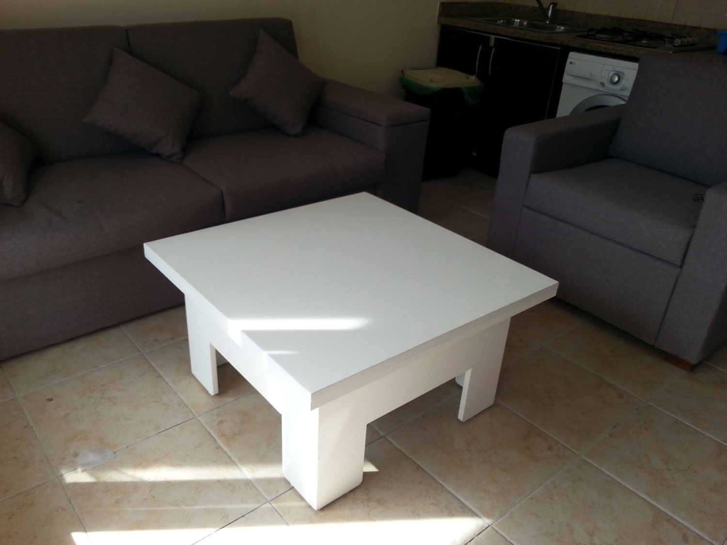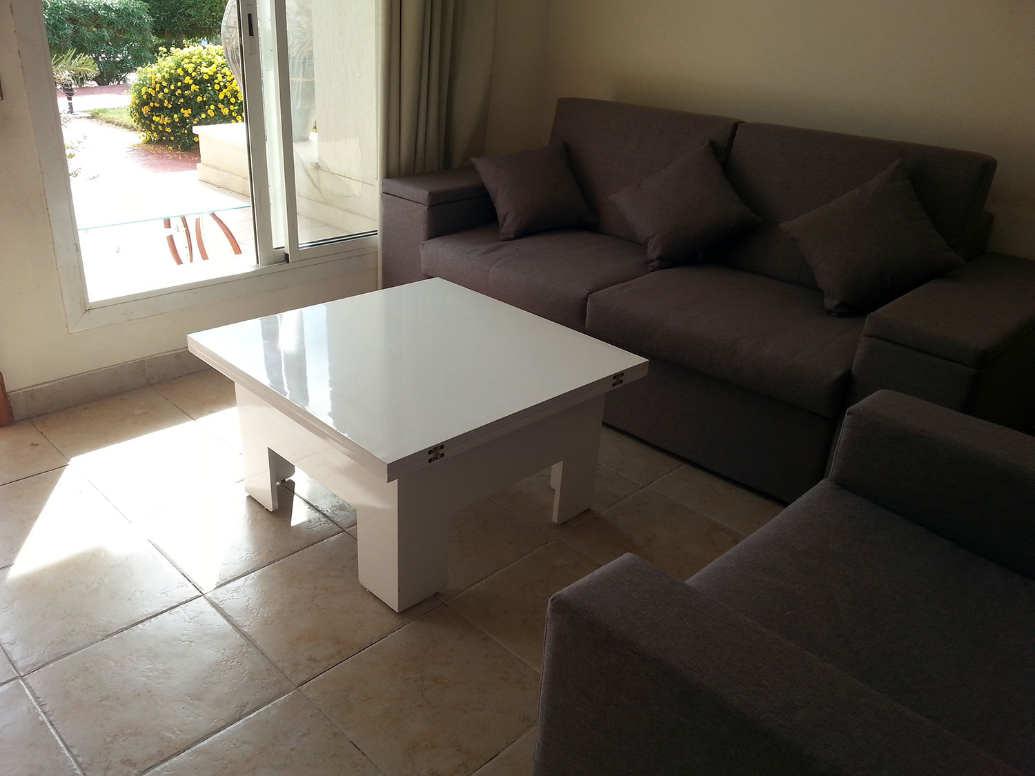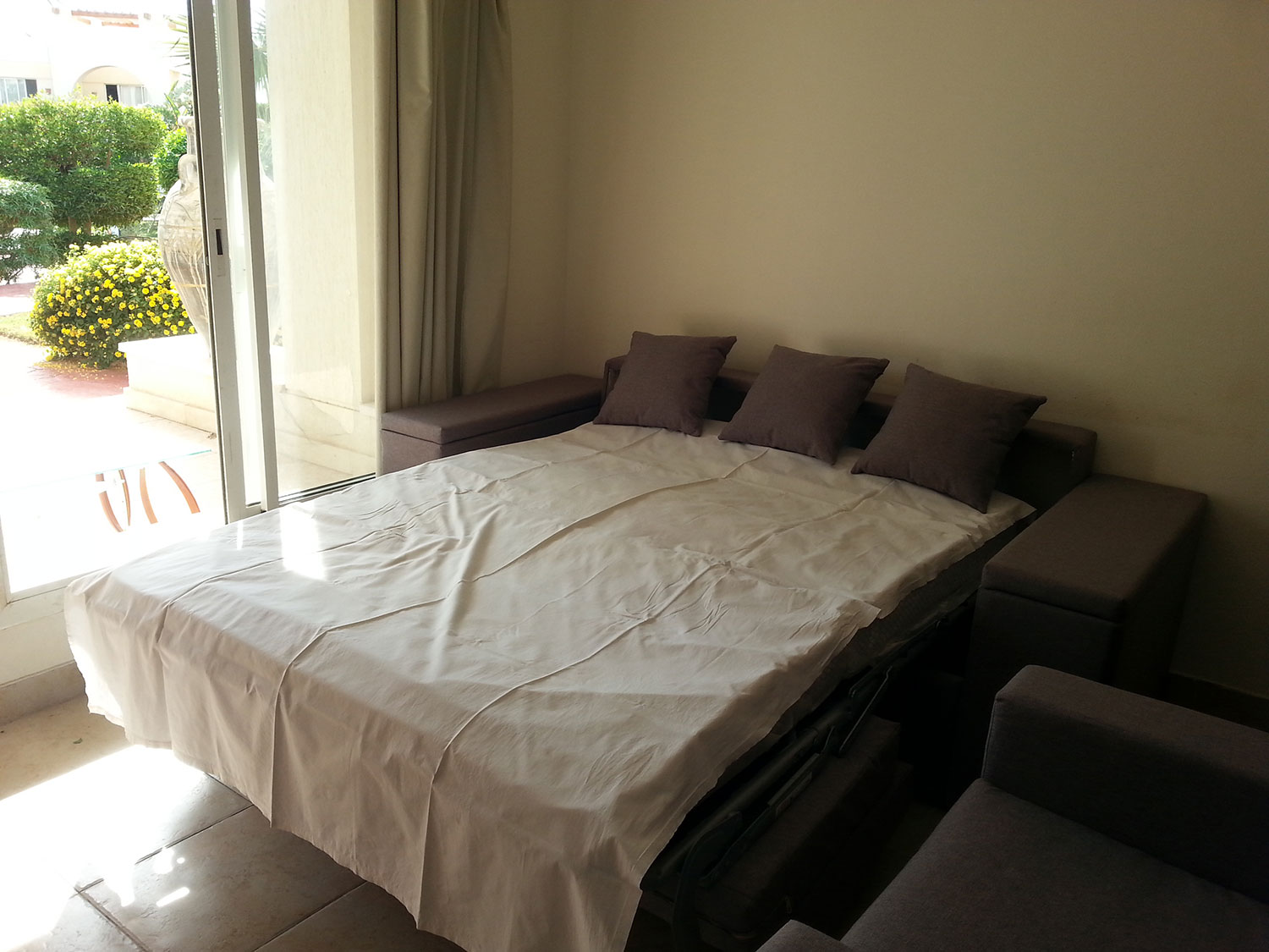 Living with sofa bed, and coffee table